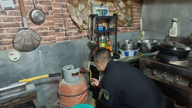 此次专项整治重点对餐饮场所使用液化气钢瓶瓶体是否有锈蚀、损伤及合格标志、使用年限是否符合标准,对燃气阀门、减压阀、燃气灶具、连接软管等设备进行全面检查。针对燃气阀门,重点检查阀杆灵活性、密封性能,确保无老化、泄漏等问题;对减压阀,通过压力测试等方式,排查是否存在调节失灵、超期使用、非正规厂家生产等隐患;在燃气灶具检查中,严格依据《家用燃气灶具》国家标准,仔细核查熄火保护装置是否有效、能效标识是否规范、燃气接口是否牢固。
